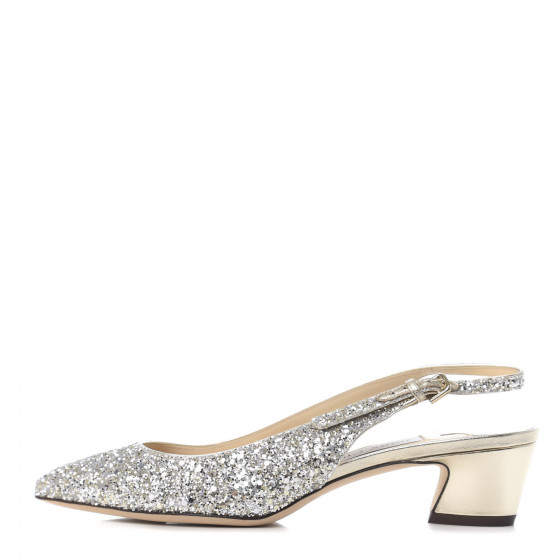Jimmy Choo Slingback Pointed Toe Glitter Shoes Champagne