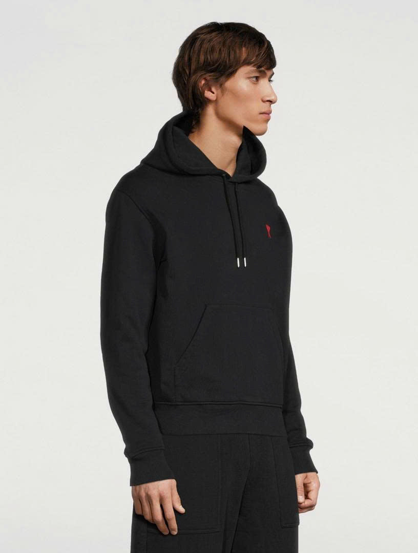 This hooded sweatshirt is designed with drawstrings and red AMI de cœur embroidery at the chest. Crafted in loopback organic cotton fleece, the hoodie is finished with tonal AMI embroidery under the back neckline and a front kangaroo pocket.