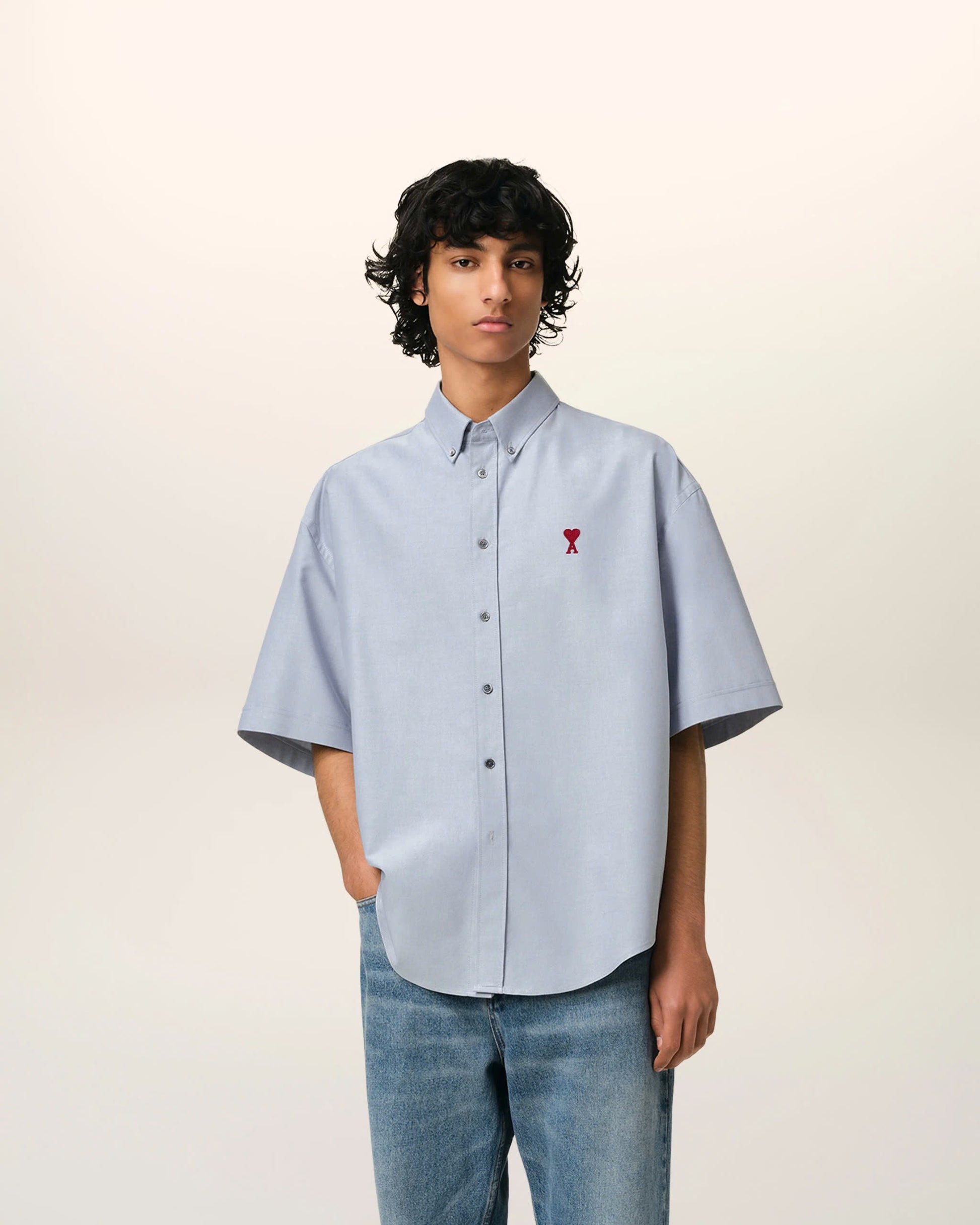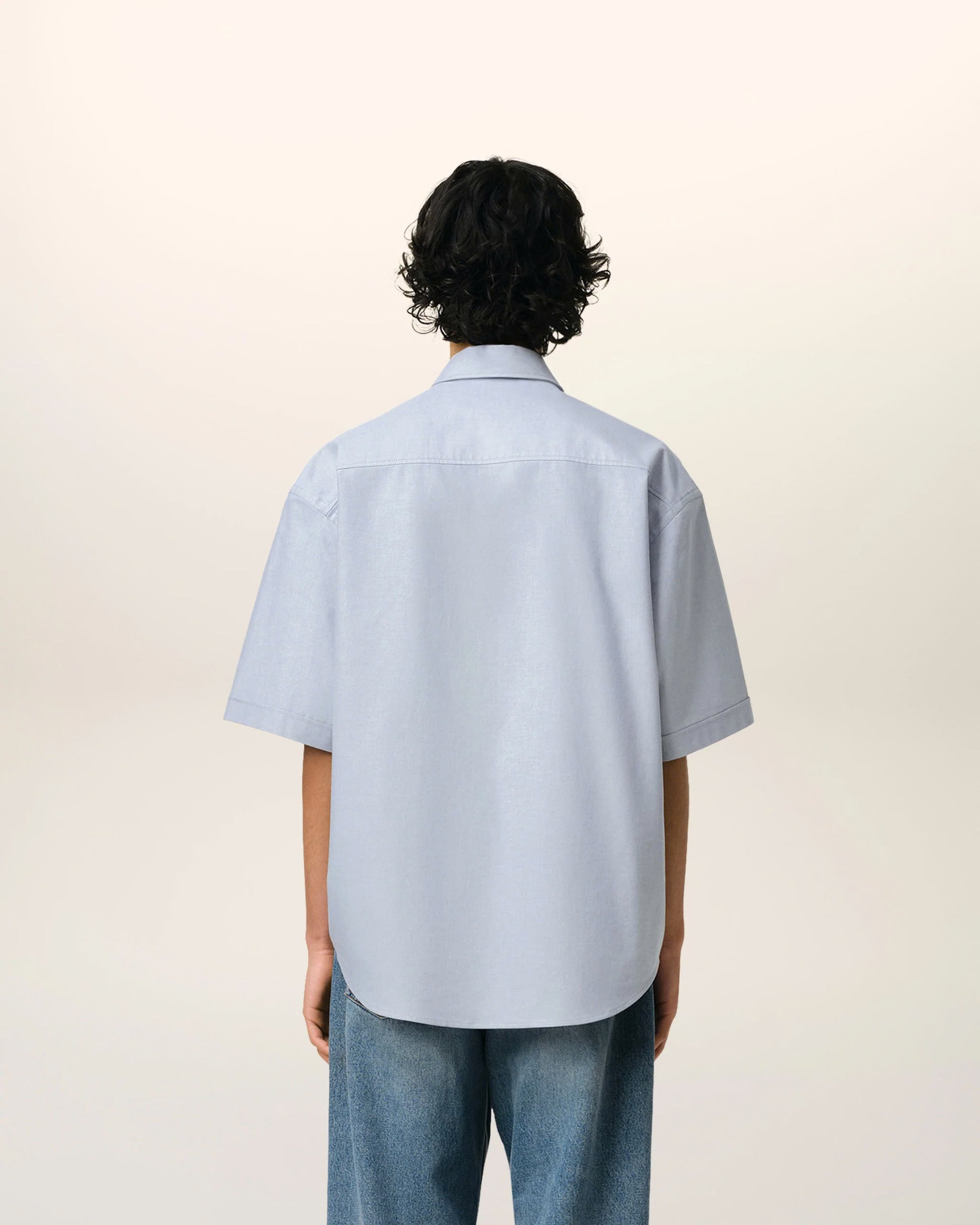 Blue Cotton Boxy Fit Short Sleeves Shirt