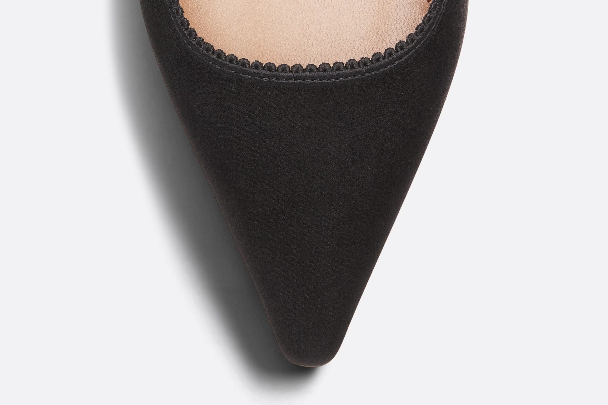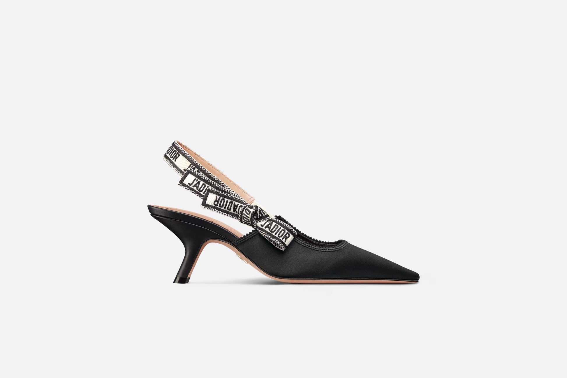 The J'Adior slingback pump is a prime example of Dior's savoir-faire. Crafted in black embroidered satin and cotton, the refined and elegant style is completed by a two-tone J'Adior signature on the embroidered cotton ribbon, bow and 6.5 cm (2.5) comma heel.
