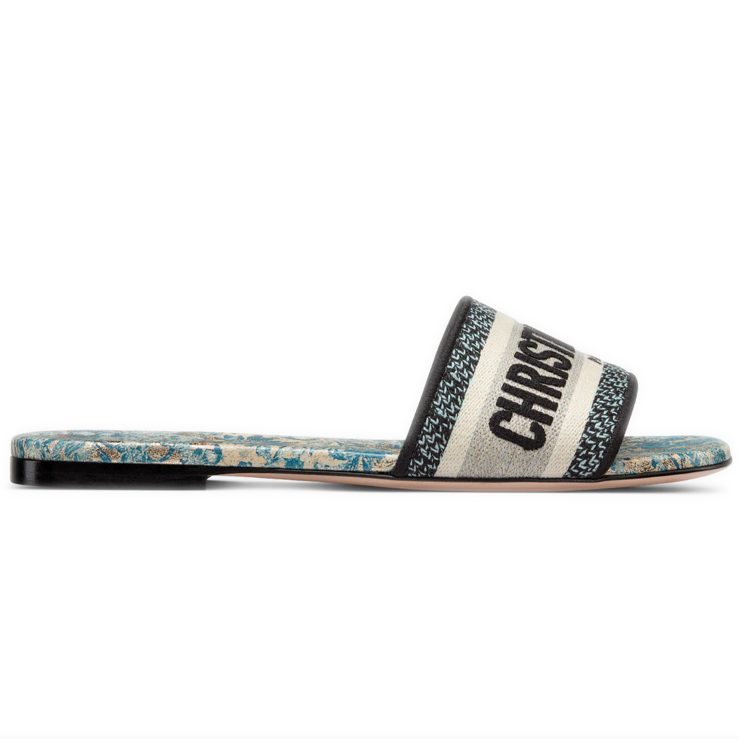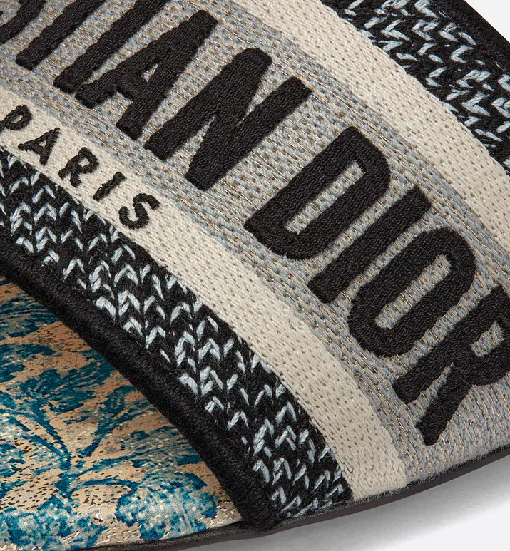 El mule Dway, atemporal y distintivo, presenta el motivo Dior Brocart, que ofrece una nueva versión de los códigos de elegancia de la Maison. El empeine azul verdoso se ha realzado con hilo metalizado dorado y con la firma CHRISTIAN DIOR PARIS bordada que permite reconocer la pieza al instante. Su diseño sencillo permite calzarlo fácilmente para completar cualquier look casual. El mule puede combinarse con otras creaciones Dior Brocart de la colección.