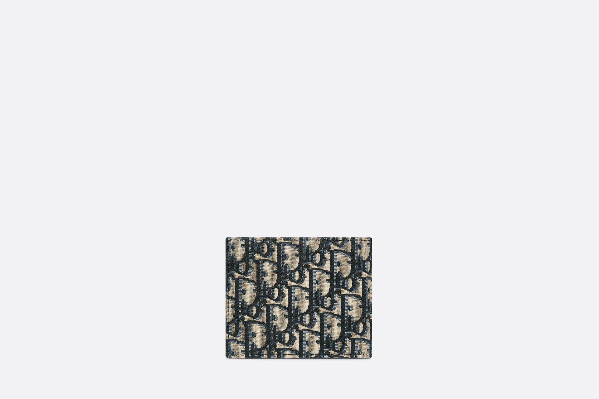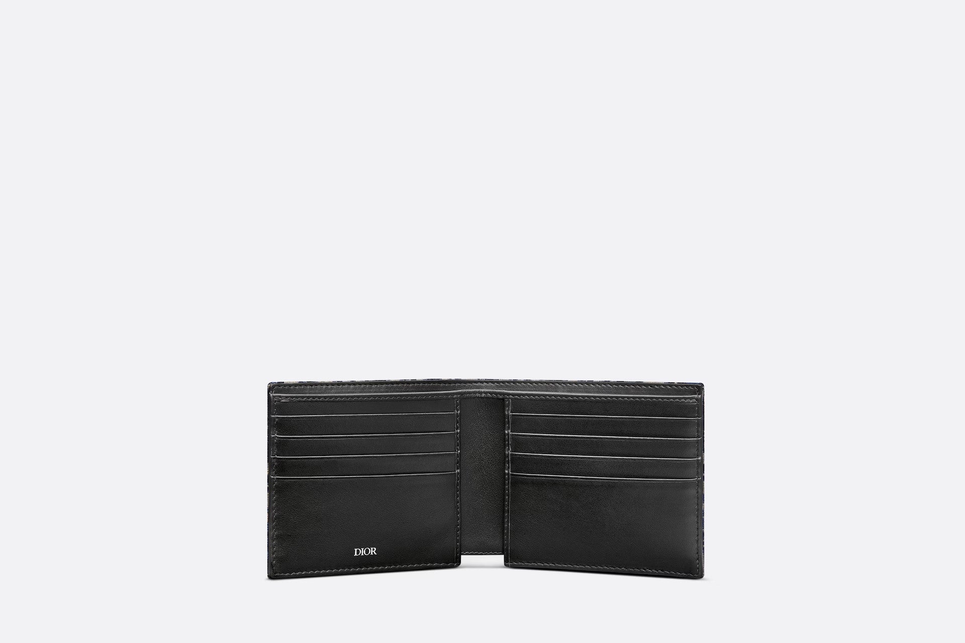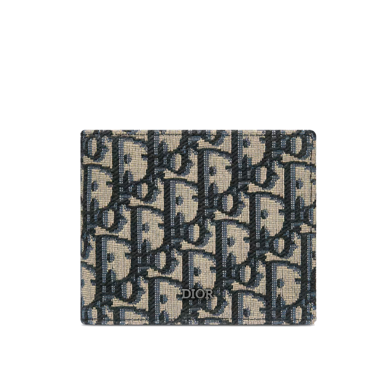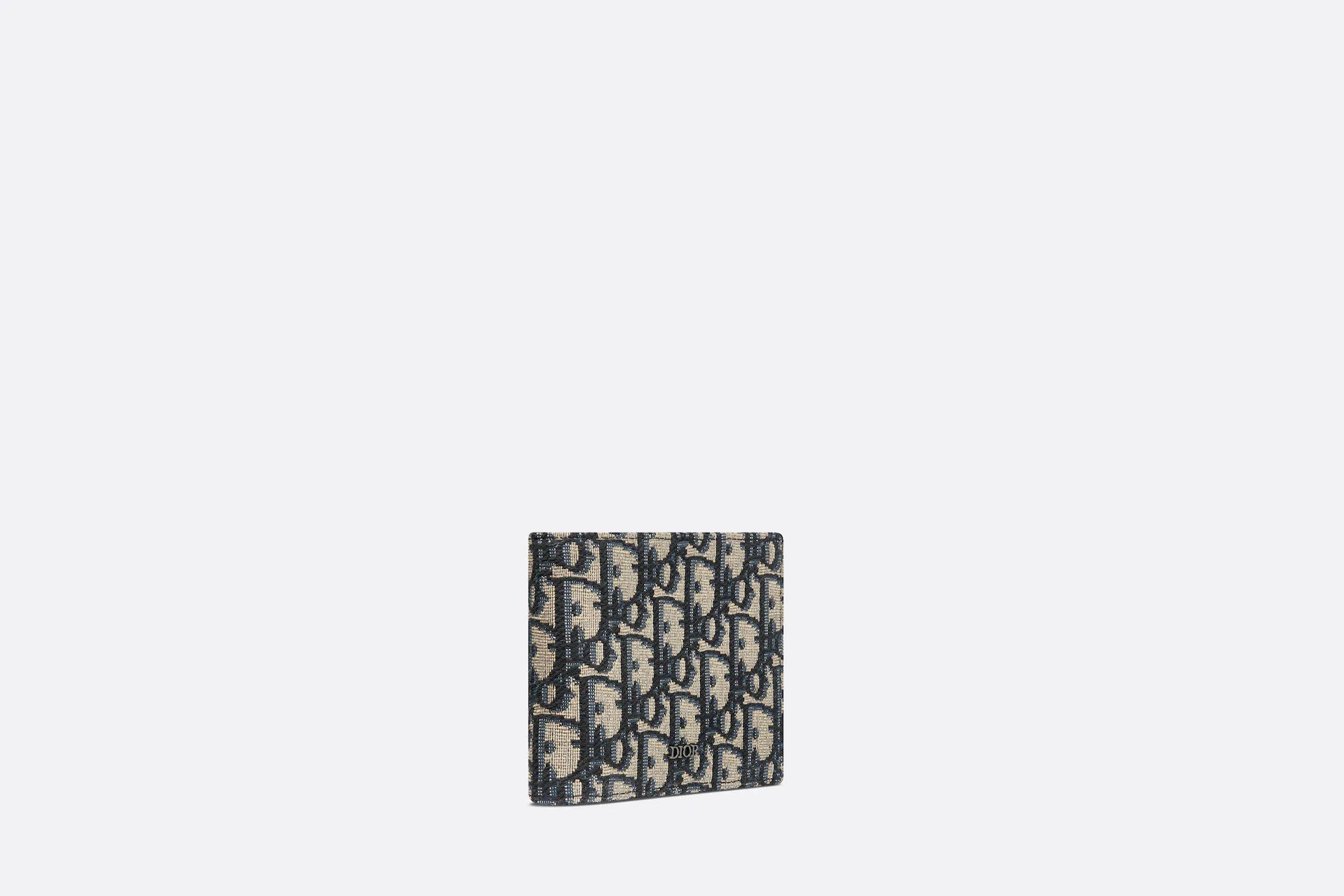 The wallet is a compact accessory with a refined look. Crafted in beige and black Dior Oblique jacquard, it showcases a ruthenium-finish brass Dior signature on the front. The interior features a double bill holder, two flat compartments and eight card slots. The bi-fold wallet will slip into pockets and bags with ease.