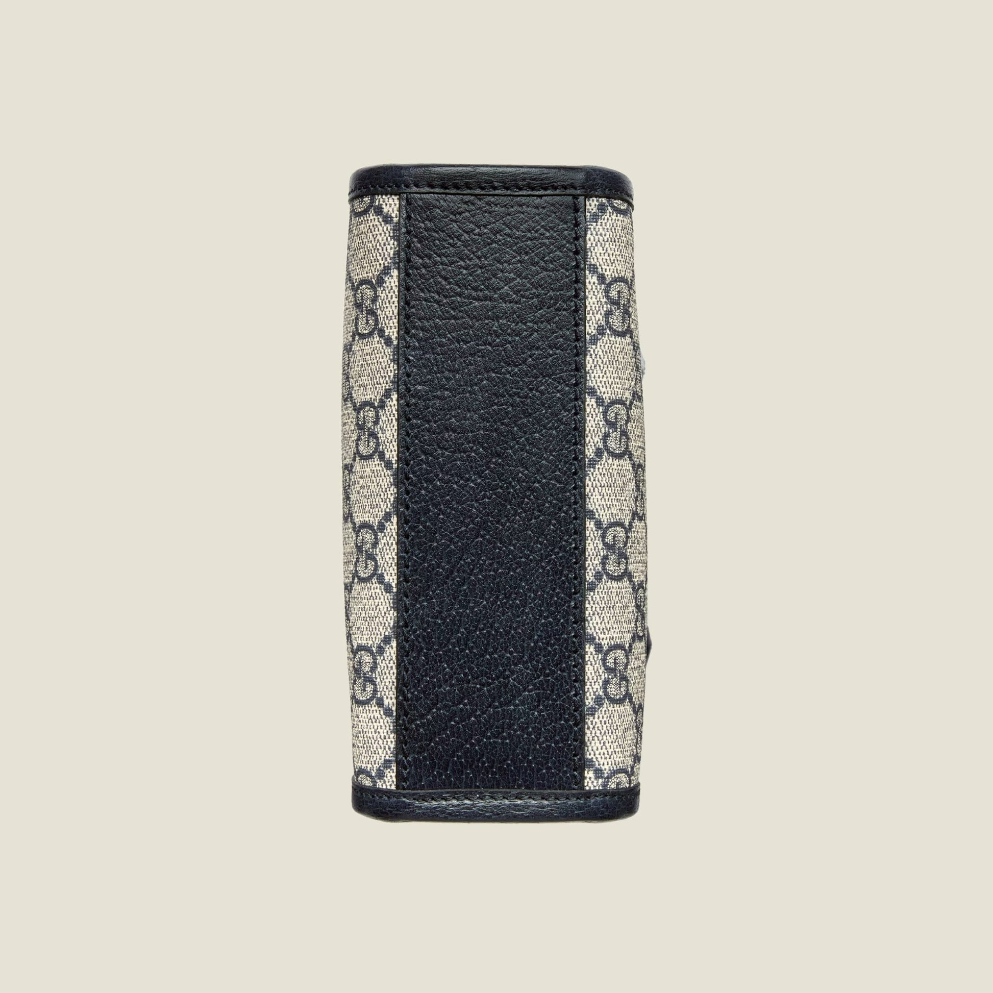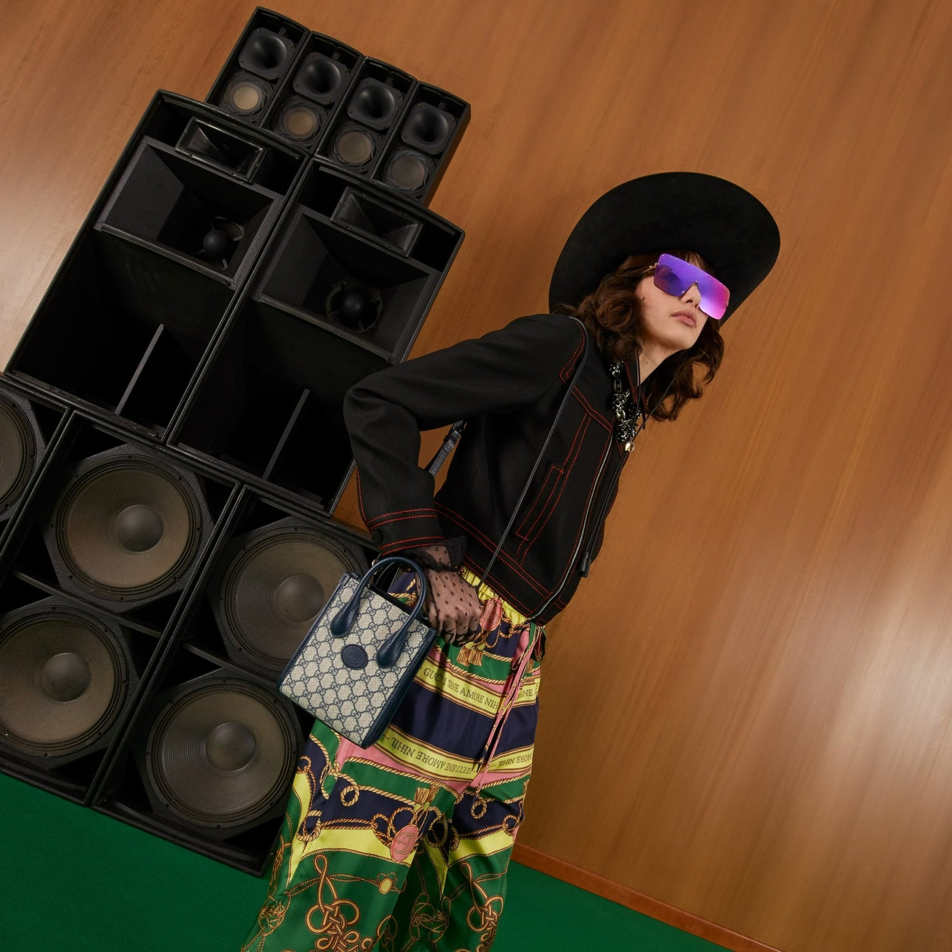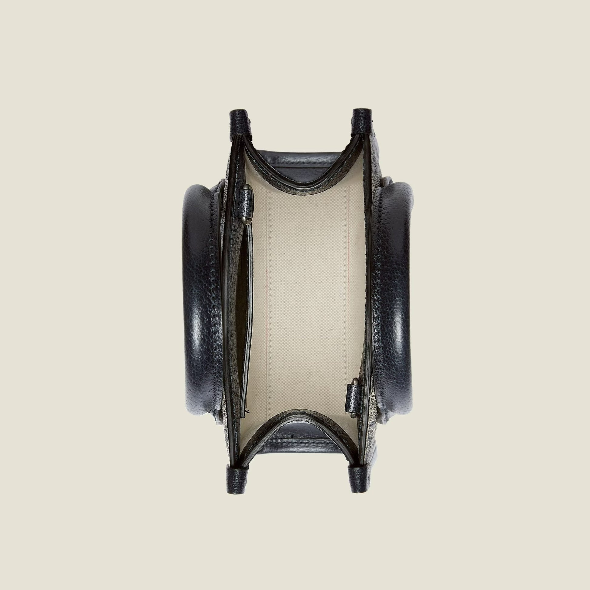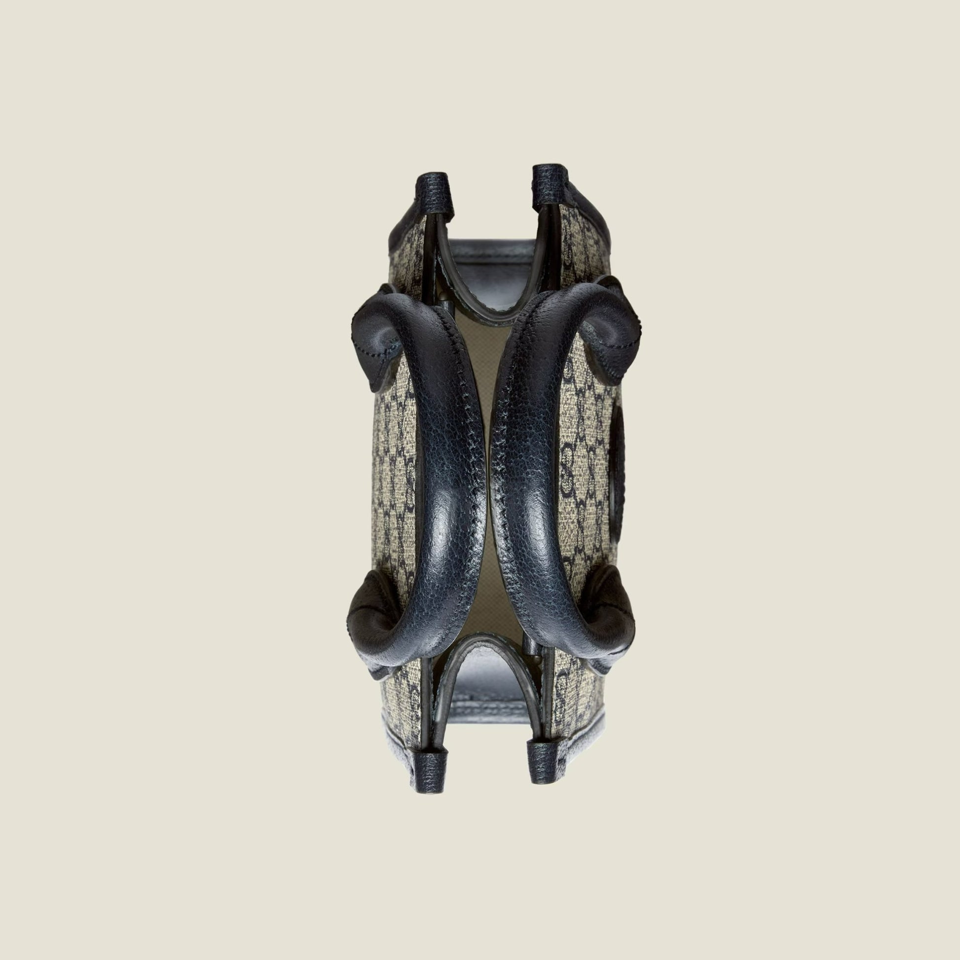 Mirroring the material's historic origins, GG Supreme is introduced in a timeless mix of blue and beige for Gucci Love Parade. The canvas has come to the front of each collection decade after decade to become a hallmark of the House. Here, the classic palette defines this mini Interlocking G tote bag.