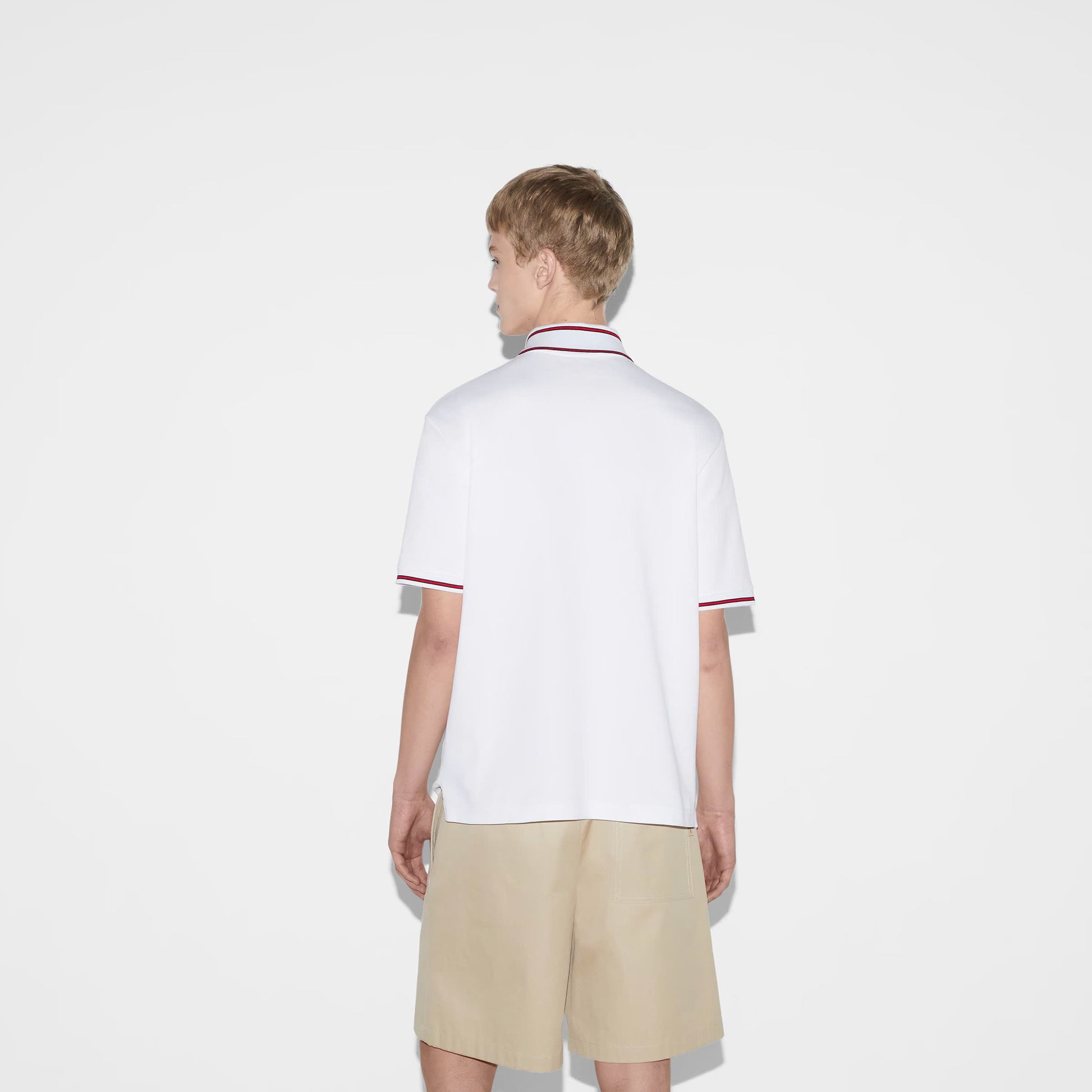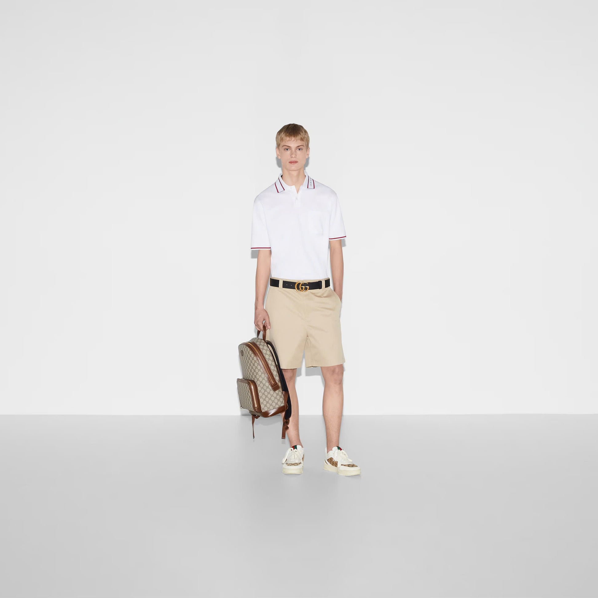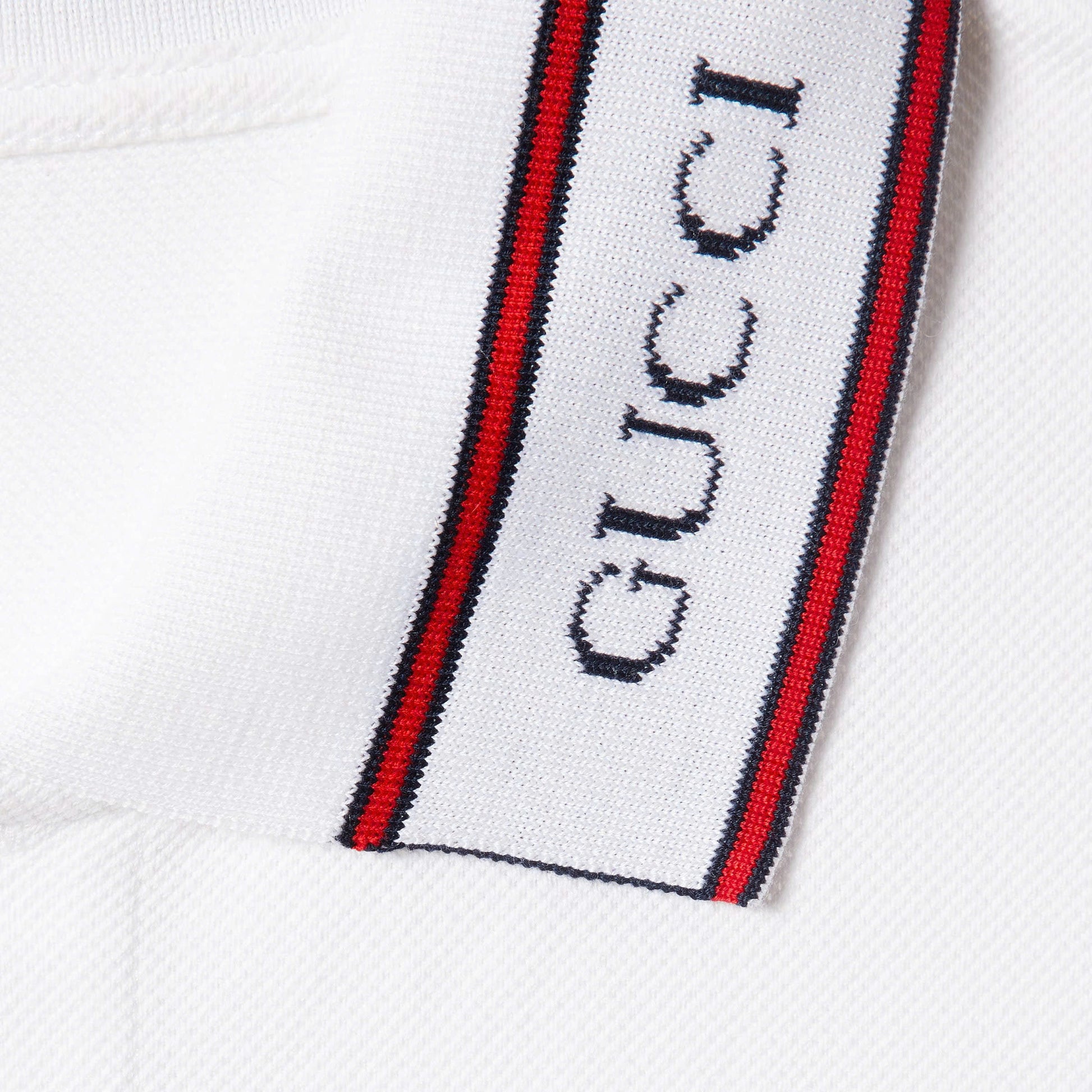 Inspired by the summer spirit and beach clubs on the Italian coast, this item is part of Gucci Lido. With white as a fresh canvas, the Web is being re-envisioned as unique details through special constructions and stitching techniques that elevate this stretch cotton piquet polo shirt to an essential piece in the Pre-Fall wardrobe.
