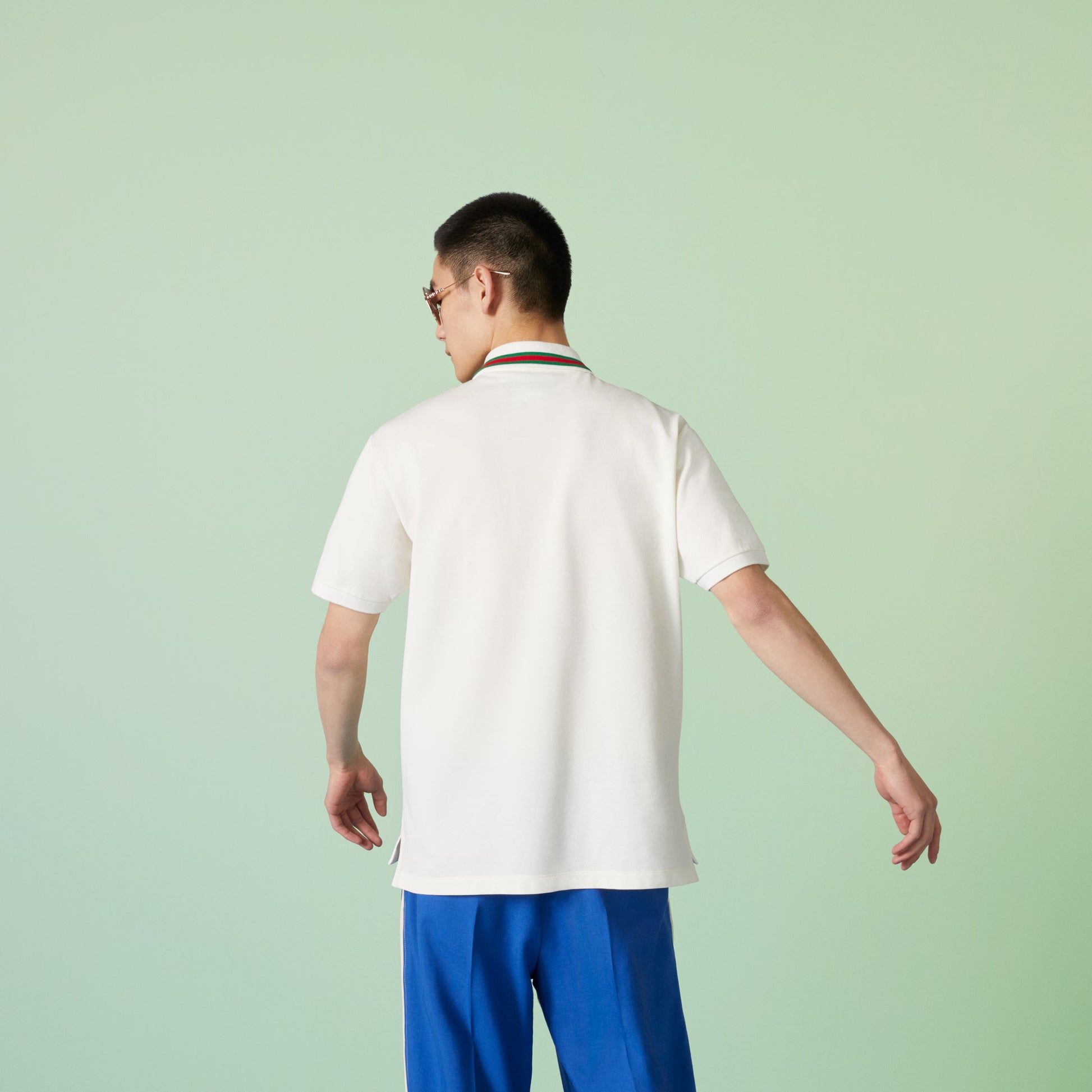 Inspired by the summer spirit and beach clubs on the Italian coast, this item is part of Gucci Lido. In a play between textures and applications, the most iconic motifs of the House enhance ready-to-wear designs throughout the Pre-Fall 2023 collection. Gucci’s signature mix of archive elements gets a contemporary twist, imbuing timeless pieces with a sophisticated yet modern touch. Here, the Double G embroidery decorates this white polo crafted from stretch cotton.
