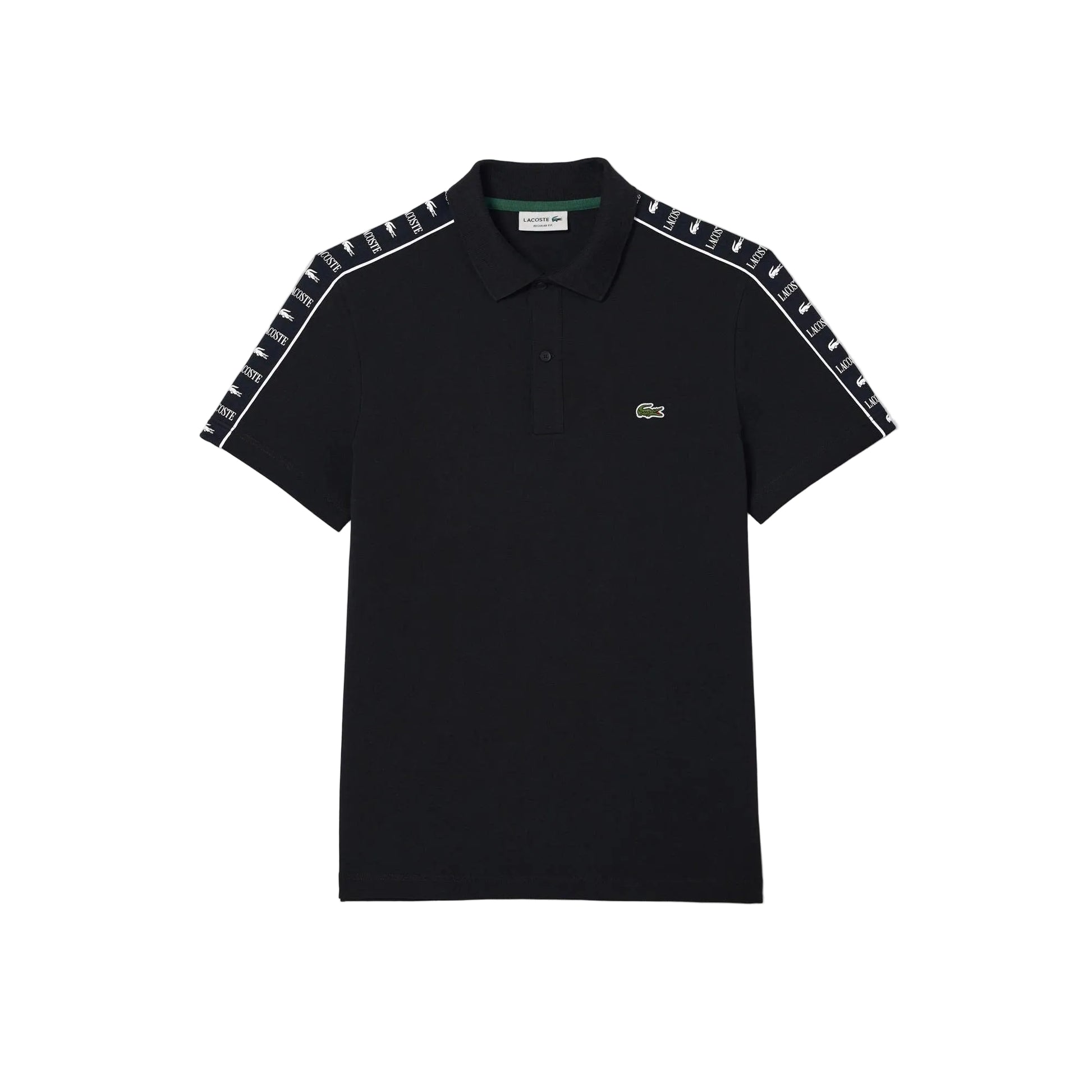 - Lacoste logo stripes and crocodile on sleeves