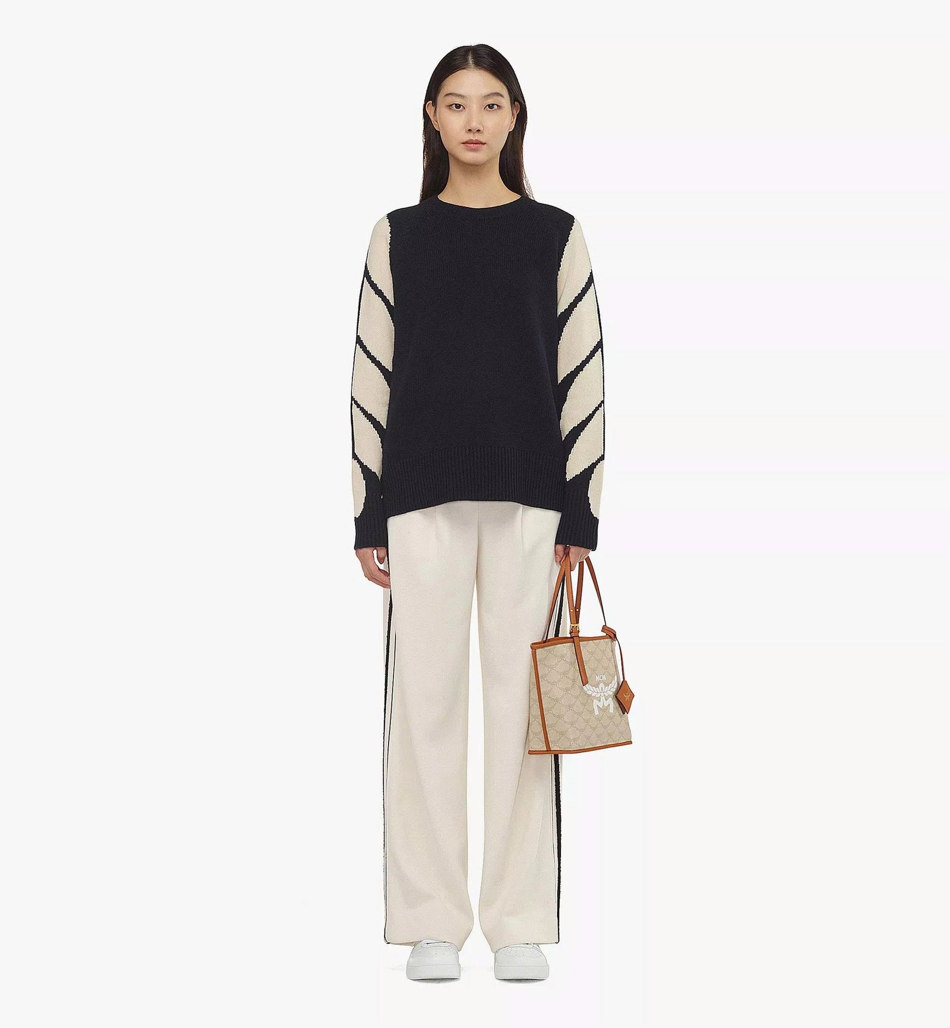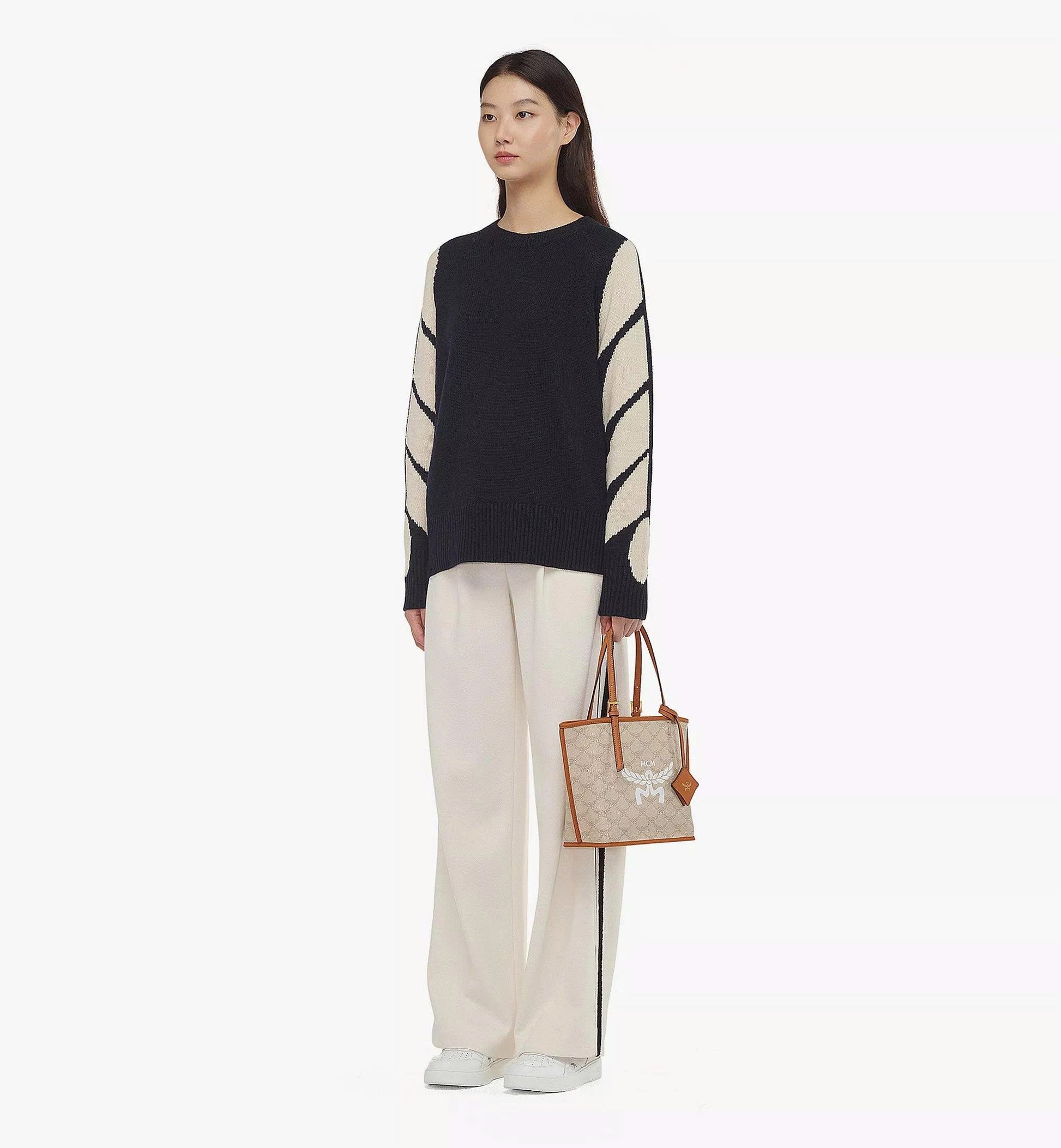 A triumph of MCM craftsmanship, the noble laurel leaves form the Lauretos monogram atop this mini shopper. Nappa leather accents, such as the handles and detachable Bavarian diamond hang tag inspired by a storied travel heritage, complement the silhouette. The accompanying monogram pouch serves as a standalone purse for short trips.