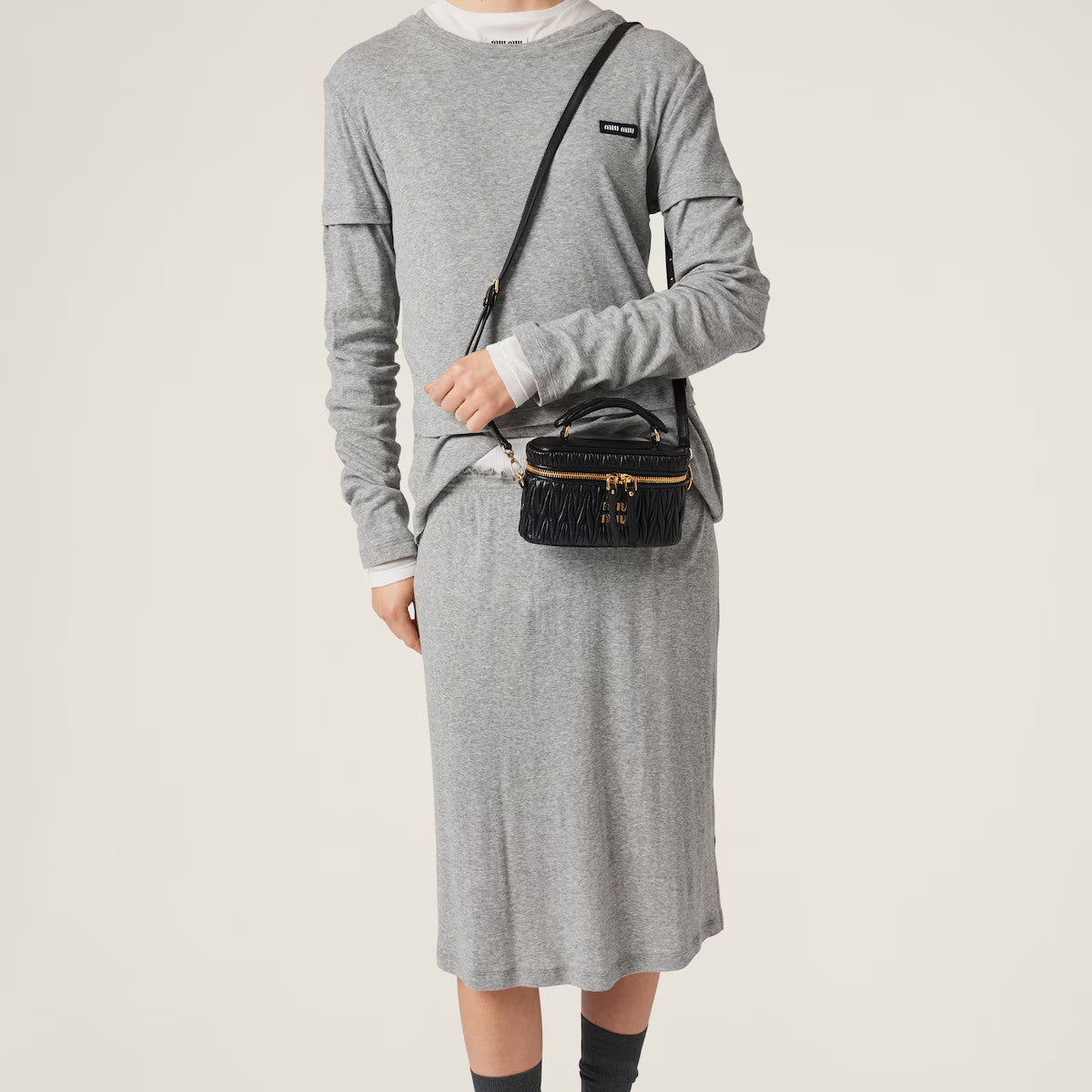 Fine matelassé workmanship characterizes the lines of this shoulder bag thanks to the three-dimensional, textured and extremely sophisticated effect. The lettering logo on the front, which echoes the different metal finishes, stands out on the refined craftsmanship with an iconic and immediately recognizable touch. The dynamic, elegant lines and adjustable, detachable shoulder strap contribute to the versatile, functional and modern design of the bag.