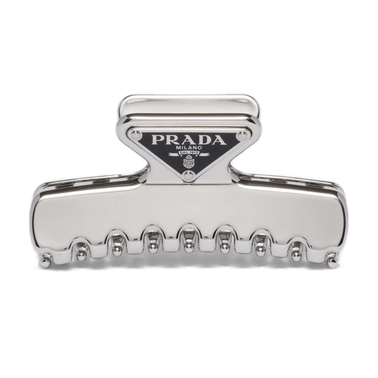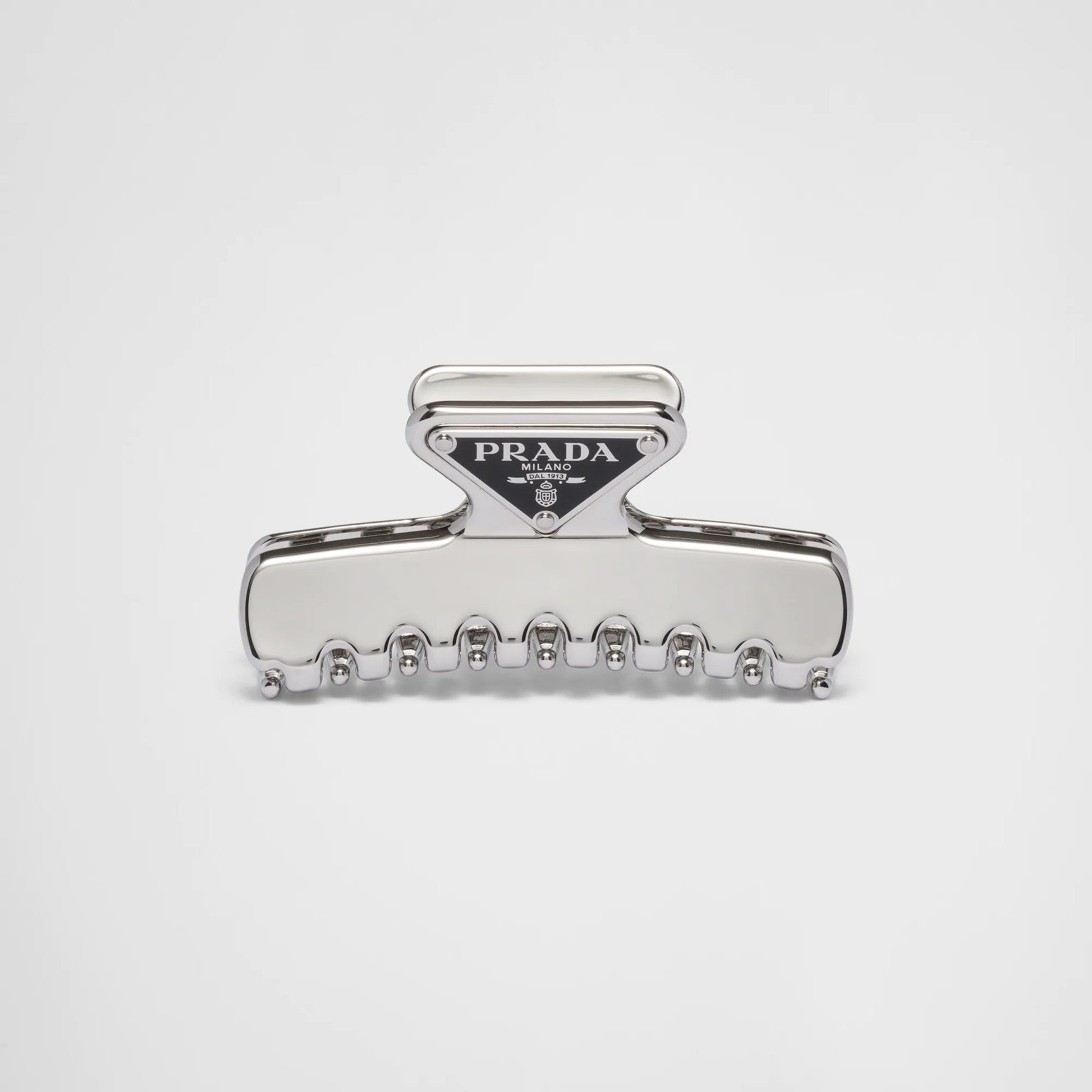 This hair clip with sophisticated and versatile allure is made of enameled metal and decorated with the triangle logo on one end.