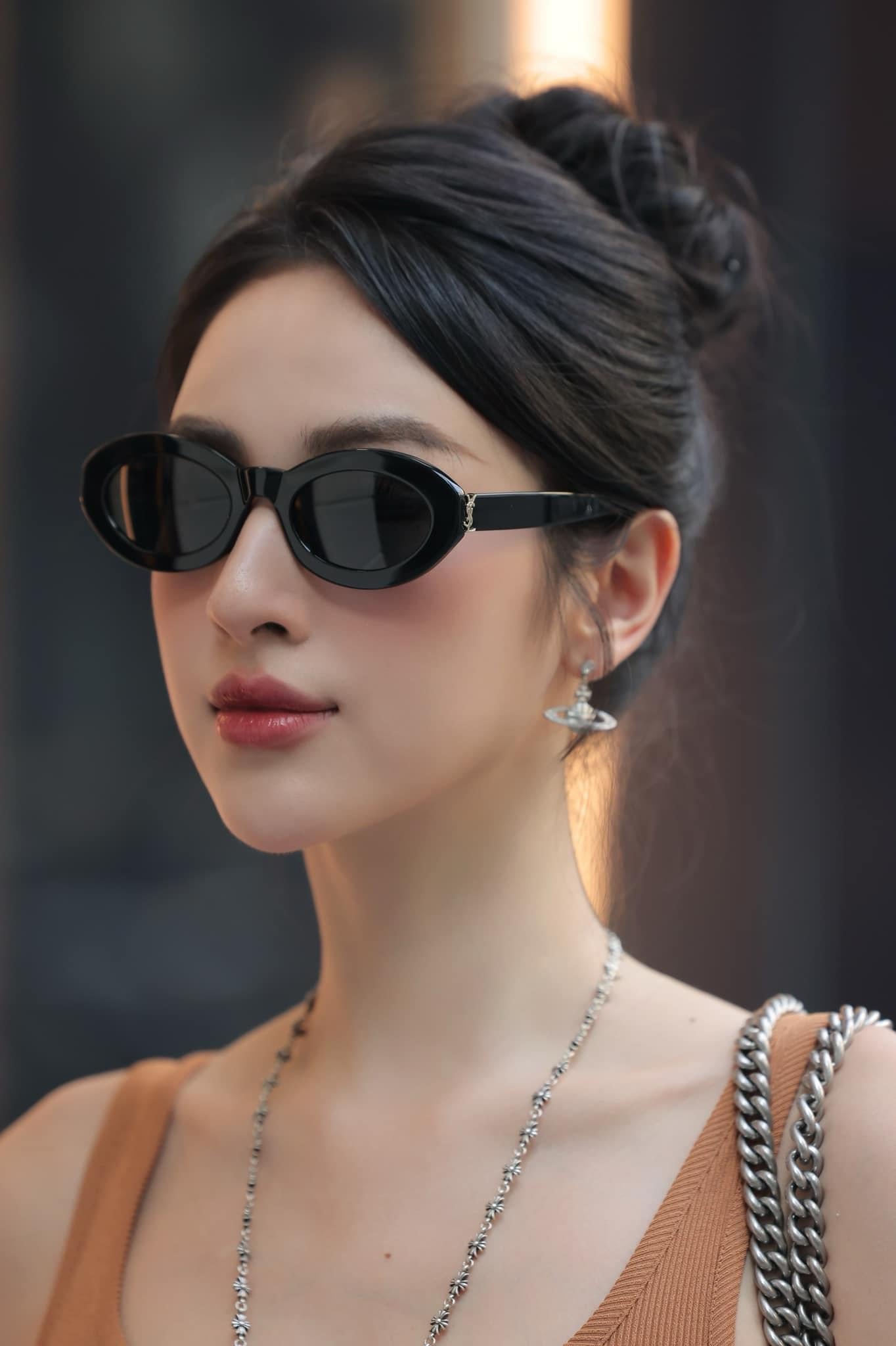 SUNGLASSES WITH OVAL ACETATE FRAMES AND NYLON LENSES.