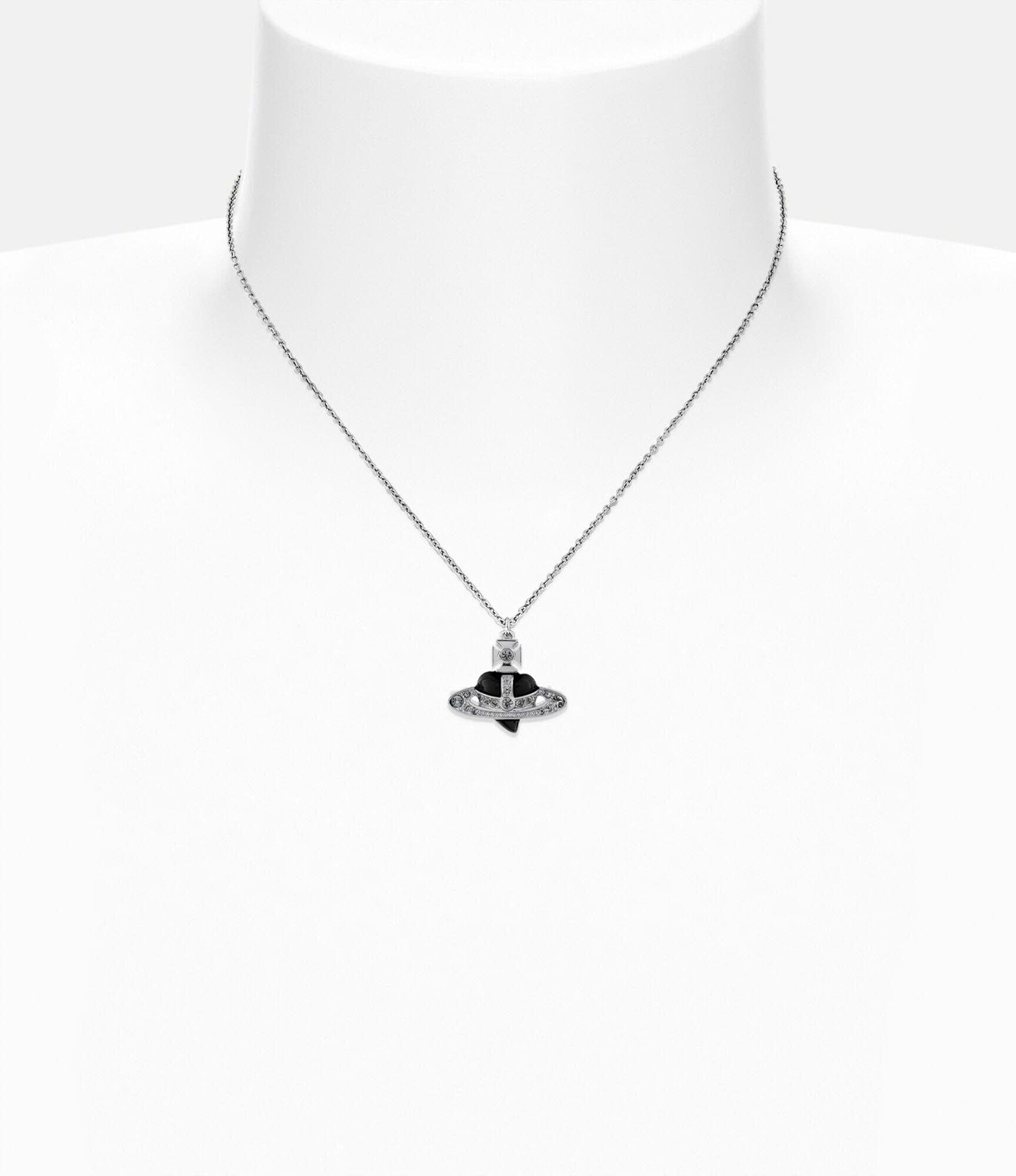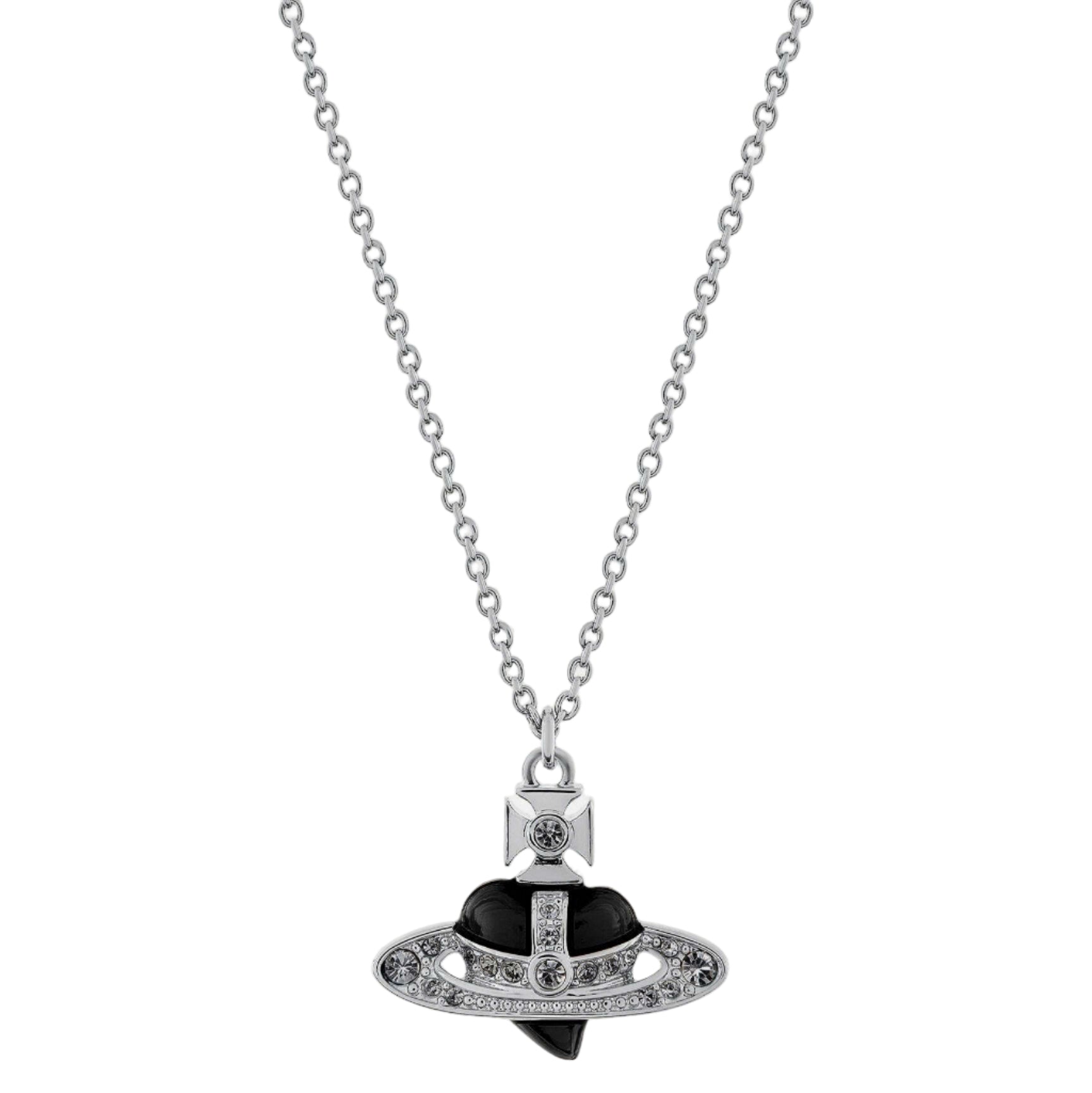 Our New Diamante Heart Pendant necklace features a silver-tone metal profile, complete with crystal-embellished details and an asymmetric heart silhouette. The heart shape has become a signature style of the house, synonymous with Vivienne's affection for both humanity and the planet.